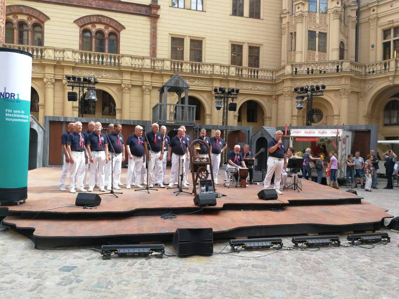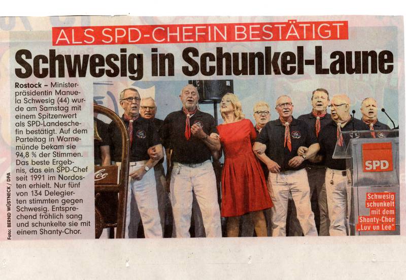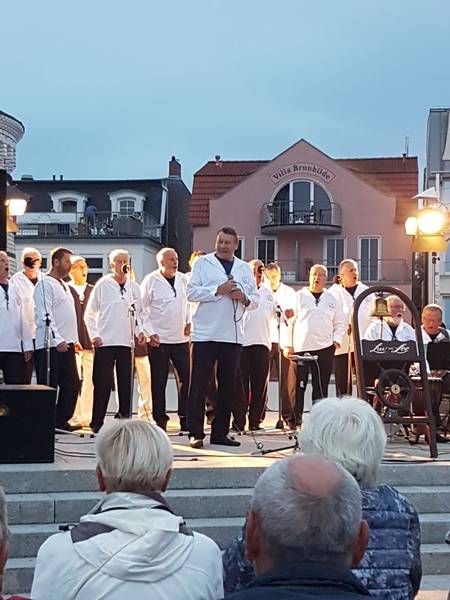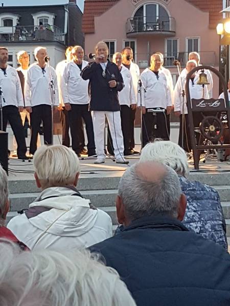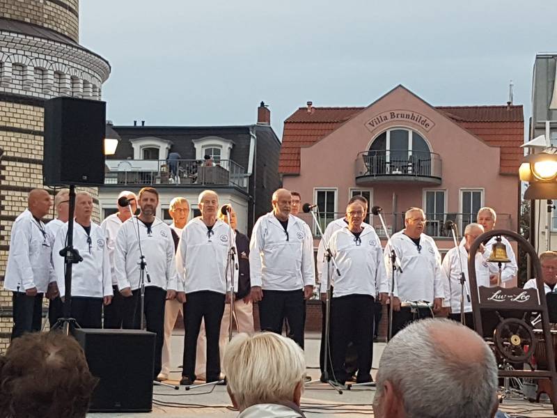 Aus dem Leben und Wirken des Rostocker Shantychors im Jahr 2019 - eine Auswahl in Bildern ! 14.12.2019 - 12. traditionelles Adventskonzert der 3 Rostocker Chöre "Celebrate", der Frauenformation "Sing man tau" und dem Shantychor "Luv un Lee" in der Stadthalle21.08.2019 - Auf dem Kreuzfahrtschiff "Marella Explorer" zur Unterhaltung der Gäste aus den USA, England, Schottland und Irland - International kein Hinderniss für uns17.08.2019 - Familienfest der Fa. Liebherr mit ca. 8000 Besuchern am Standort Rostock - Überseehafen11.08.2019 - Mieterfest der WG Schifffahrt Hafen Rostock auf dem Traditionsschiff während der Hanse Sail11.08.2019 - Auftritt auf der Gemeinschaftsbühne von HanseSail und Antenne MV am Abschlußtag der Sail10.08.2019 - musikalische Verabschiedung der "Nordwind" - ein Seemannschaftsschulboot des Deutschen Marinemuseums Wilhelmshaven und gleichzeitig heute eine Mitsegelgelegenheit für einige Chormitglieder09.08.2019 - Empfang des Oberbürgermeisters und Verabschiedung im Rahmen der Hanse Sail - Halle20724.07.2019 - Auftritt auf dem Kreuzfahrtschiff "Marella Explorer" zur Unterhaltung der Passagiere aus England, Amerika, Schottland und natürlich auch deutschem Publikum28.06.2019 - Auftritt für ein Münchener Unternehmen der Automobilindustrie in der Yachthafenresidenz Hohe Düne in Warnemünde mit 300 Teinehmern08.06.2019 - 2.Warnemünder Portparty zur Verabschiedung der Kreuzliner30.03.2019 - Auftritt zum Landesparteitag der SPD in Rostock- Warnemünde |