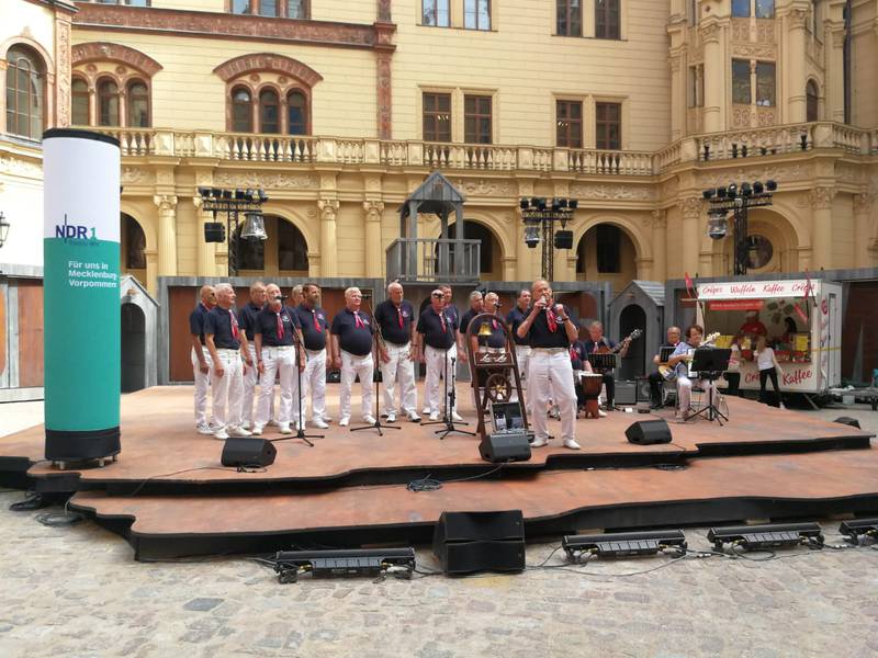 Heute unser Auftritt zum Tag des offenen Landtags in Schwerin. Hier erwartete das Publikum neben Rundgängen, vielen Ständen rund um das Schweriner Schloss auch das NDR- Bühnenprogramm im Schloss - Innenhof. Moderiert wurde das Programm von der beliebten Radio-Moderatorin "Dörthe Graner". Direkt vor unserem Auftritt das "Pasternak-Trio" aus Rostock und eine Talkrunde mit der neuen Landtagspräsidentin Birgit Hesse. Dann kamen wir mit unserem heiter-maritimen Programm und sorgten so für ordentlich Stimmung. Den Medien zufolge tummelten sich heute 20000 Besucher im Landtag. Hier geht es nun zu reichlich Bildern in unserer Fotogalerie. Wir wünschen viel Spaß und sagen DANKE !
