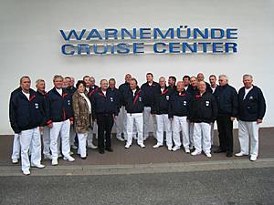 Marko Vogt und Horst Marx moderieren uns an Gruppenbild in Warnemünde